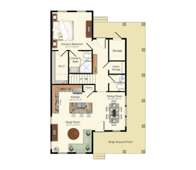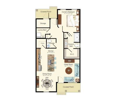 Cozy and elegant, The Sandpiper is perfect for those seeking a low-maintenance lifestyle. This one-bedroom cottage pairs a welcoming great and dining room with a generous primary bedroom that opens to a master bath and walk-in closet.